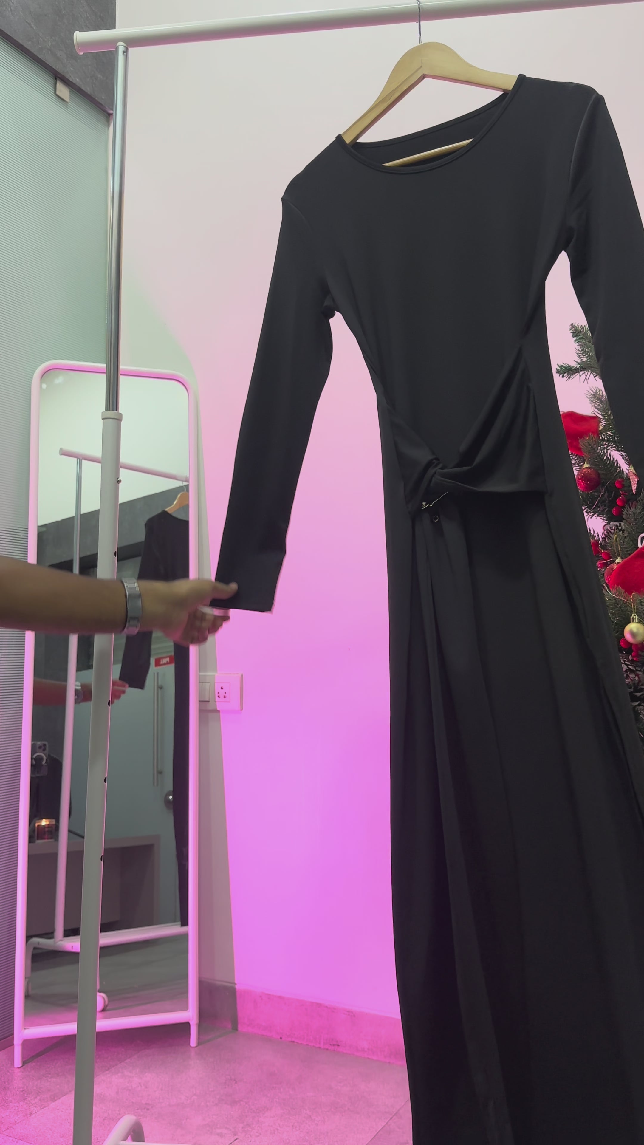 Elegant floor-length gown with fish-cut silhouette & waist belt. Perfect for parties & special events.